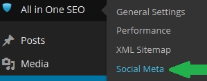 First of all, you will need to adjust some settings in the 'All in One SEO' plugin. To do this go to 'Social Meta' in your 'All in One SEO' plugin: