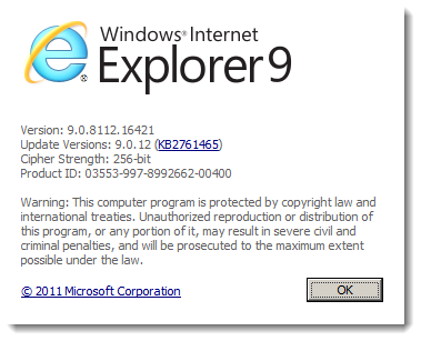 And, after this, you should be able to get the version dialog box, as in other web browsers. Here is the version: