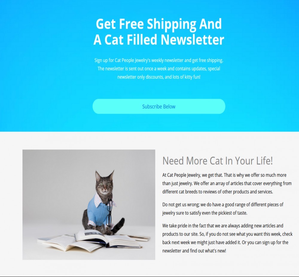 One recommended an email service that was more for a person who offered digital downloads, courses, ebooks, things of that nature. That email service did not fit Cat People Jewelry's needs.