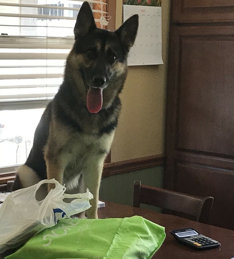 Nice looking canine companion you have there my friend, but I totally agree that jumping up on tables and stealing food from the kitchen is not a great habit!