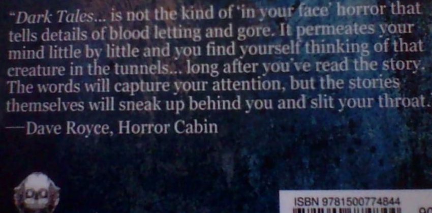 I recently received an advance PDF format copy of a horror book in exchange for a review. (In case you don't know, I have a horror site as my niche here.) I really liked the book and gave it a positive review ( http://horrorcabin.com/dark-tales-elder-regions-review ). You can read it if you're so inclined.