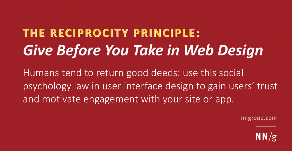 The Nielsen-Norman Group, claimed to be world leaders in researched based user experience apply the principle of reciprocity into web design.