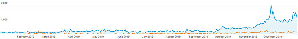 And Google rewarded me for this in early October. For the better part of 2019 my traffic never went above 150 visitors. From October traffic literally exploded and reached its peak during Black Friday with 1800 visitors.