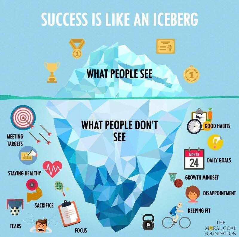 Those success posts only show the RESULT of all the hard work that has been put in. We are seeing only the tip of the iceburg.