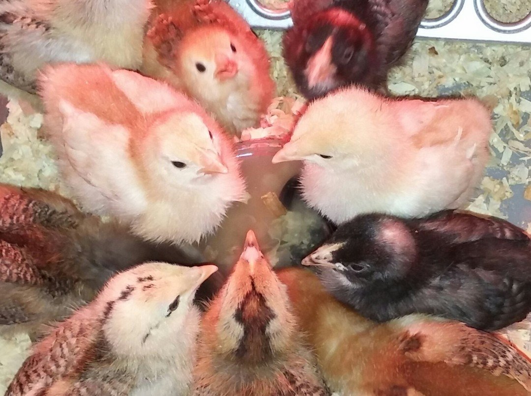 The chicks are in a big tupperware tub in the laundry room. The playpen's on the coffee table LOL. They're 3 weeks now. I think in 2 more weeks they'll be evicted to the barn! -Alexx