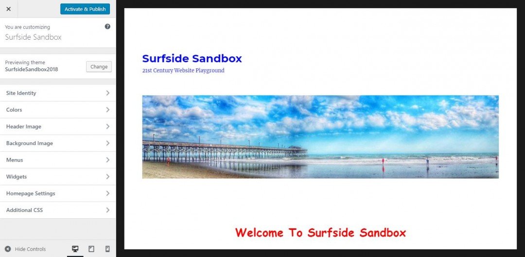 Once you do that you will see a new message that asks you to preview the new child theme. It will open in your Customizer and look like this. If it looks fine, click Activate & Publish.