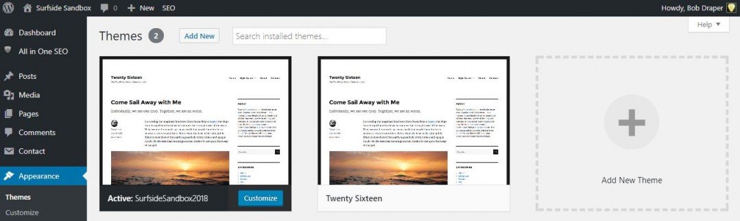 Finally, after you've activated and Published your Child Theme, go back to your WP Dashboard > Appearance > Themes and take a look. You'll see my new Child Theme next to the original Parent Theme. Everything I do now is on the Child Theme.