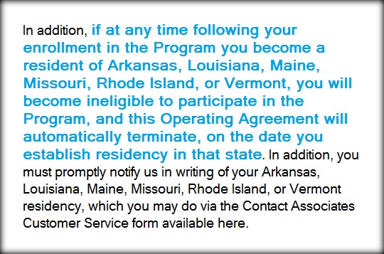 So, to eliminate potential problems and to likely make a statement, Amazon has decided to not work with these states, thus taking away the affiliate program from anyone who lives in these states. Here's the wording in their "Associates Program Operating Agreement":
