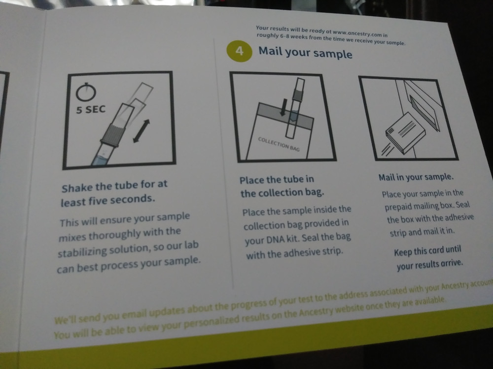 Ancestry just received my test. It will be between 6-8 weeks before I have any real details. I will keep you all in the loop! Very excited!
