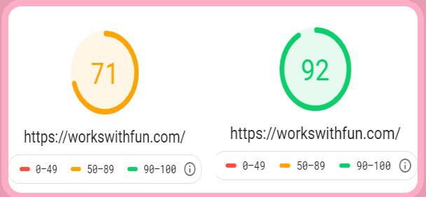 Lately, I have experimented with AMP for WP plugins, then I tested it with Google PageSpeed Insights, cell phone users: 76 and web users: 94.