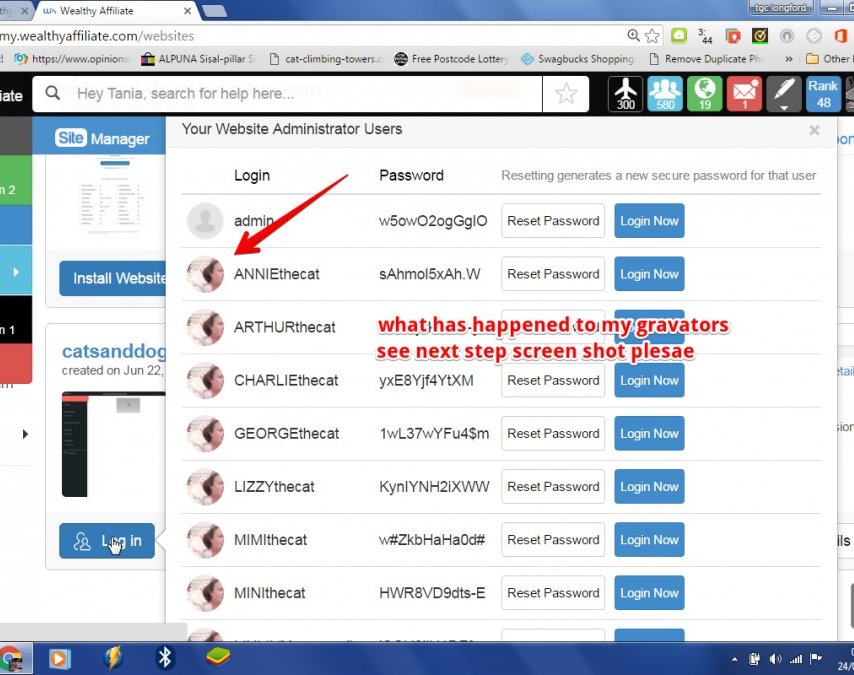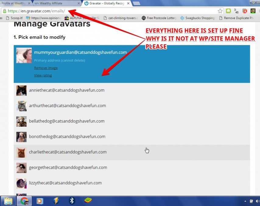 WHAT THE HELL....where are all the GRAVATARS i had created and allocated to the cats and dogs.......PANIC....logged out.....went to GRAVATAR.COM. Logged in and i saw this