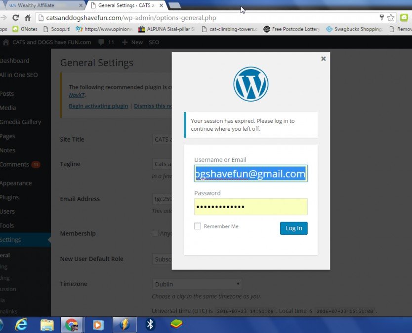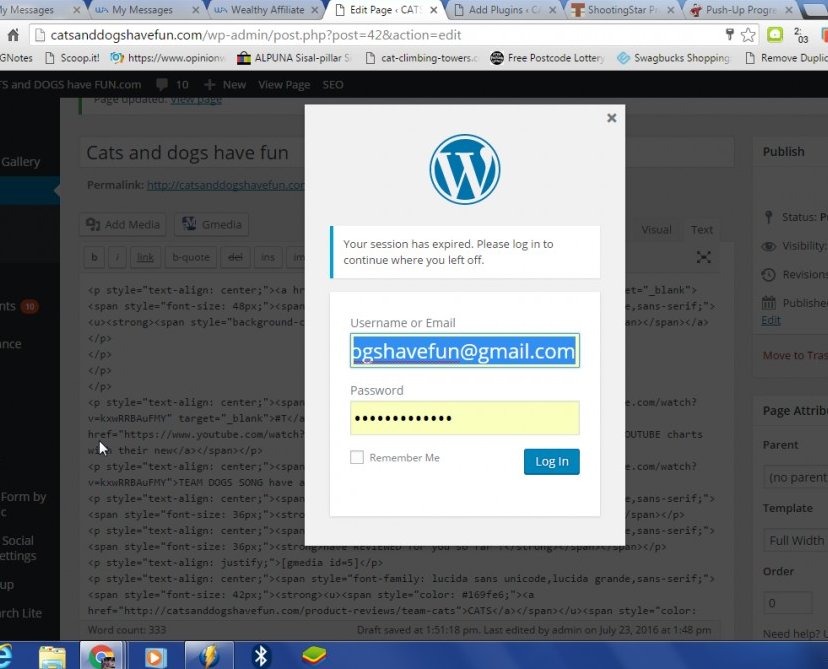 2nd screen shot, i was in wa and went into wp dashboard via wa site manager as i had to log in as one of the cats or mummyourguardian, cant remember which so that is why the wa window was open.