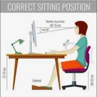 As I alluded to above, the ideal way to sit is with your feet on the floor, back upright, shoulders back, head/eyes straight forward.