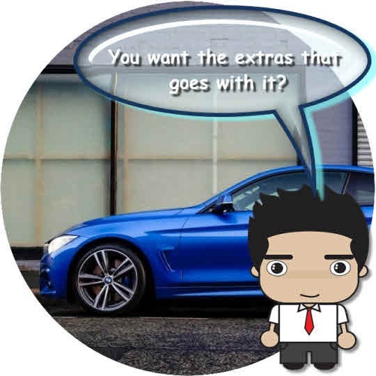 any good car salesman will always sell us many "shiny objects" - luxury floormats, a special steeringwheel cover that stays cool even on the warmest day, an upgraded rear view mirror, nice mag wheels, long-life wiper blades, special car polish, extra-ordinary non-streaking window wash, and of course a chamois to go with it, etc. All very nice and handy items, don't you agree? Our car salesman is doing us a favor by recommending these awesome products, right?