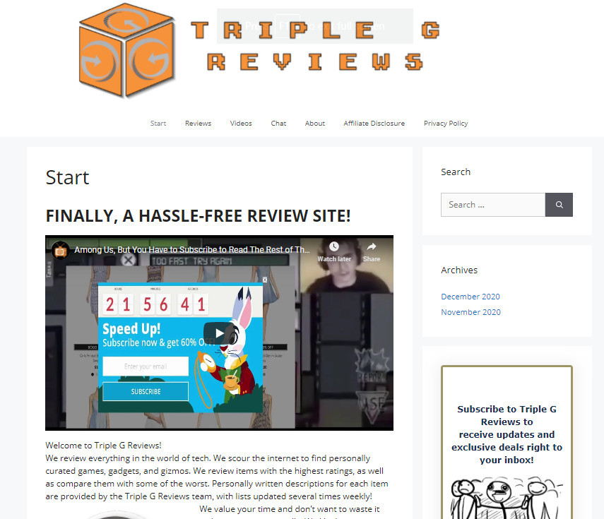 Triple G Reviews - An affiliate site with the niche of "games, gadgets, and gizmos"