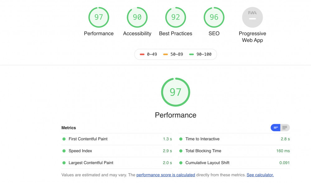 Nice results, mine are close but Lighthouse hasn't been used yet. Will check it out now that I have it added to Chrome.