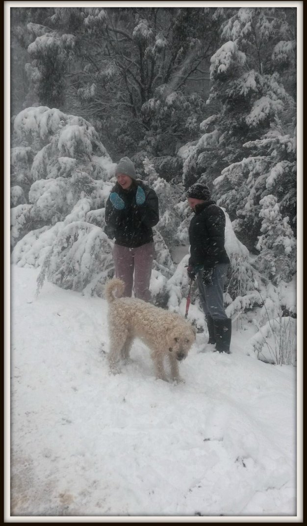 On a lighter note I have included a photo of the girls and our snow dog playing in the snow.