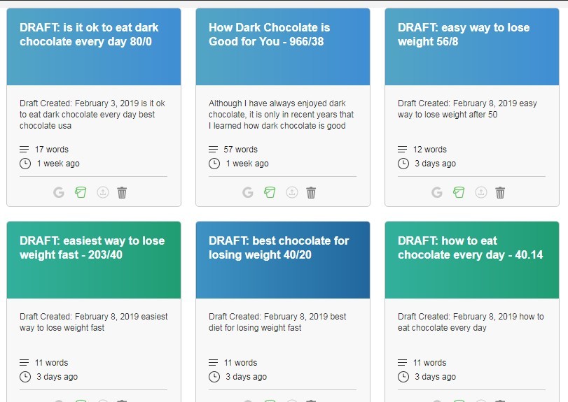 Another helpful technique that I discovered combines the use of Jaaxy with Site Content. Since I am using the free version of Jaaxy, I lose the QSR results every time I close the window. Sometimes I save my best searches as a draft but when I go back days or even weeks later, I have forgotten what my numbers were under the average searches or QSR and I find it cumbersome to go back and refresh my memory.