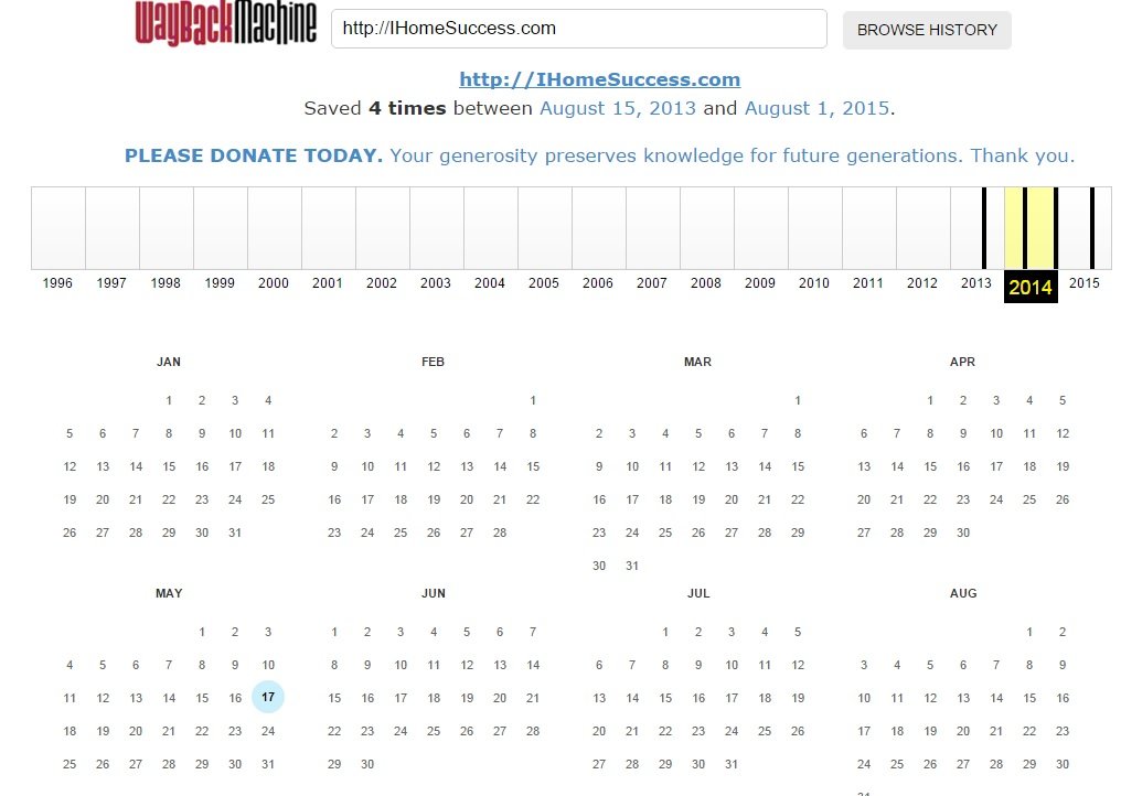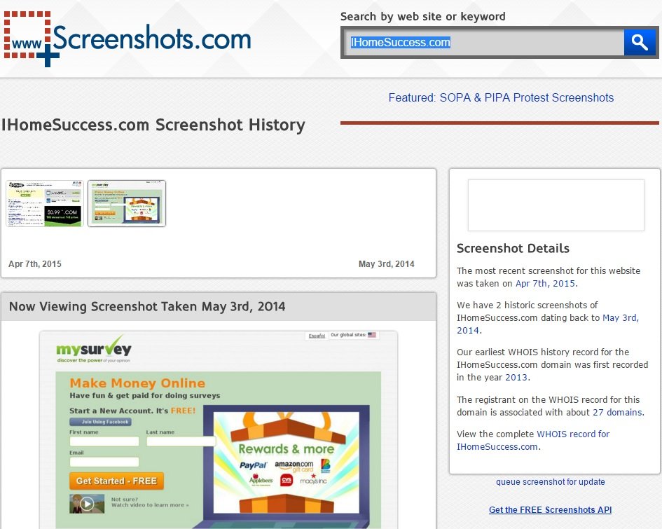 It's the home of the waybackmachine and it can often have a lot more details about a domain name than screenshots.com but the screenshots at archive.org aren't so great. So here's a sample of the history of "ihomesuccess.com"
