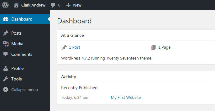 Author is limited only to publishing posts so it's a great user role choice in order to moderate kids' activities on their websites. This is how the WordPress dashboard looks like for an "Author" user role.
