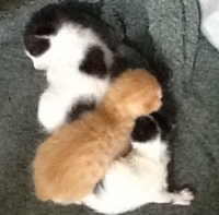 I've got to try something myself, I thought. I've got to do something to write about to show I know what I'm doing. The thought got pushed aside as we rescued our favourite street cat last week. Badly injured in one eye after a fight, she gave birth to three tiny kittens in the car park last Monday. We found them all in a patch of dirt under a scraggy bush, a tempting snack for the wild pigs that ocasionally wander from the mountain in search of tasty bin leftovers. So, going against my usual rule of bringing them inside, we now have a crate of gorgeous little kitties and a mum that thinks she's in a hotel.