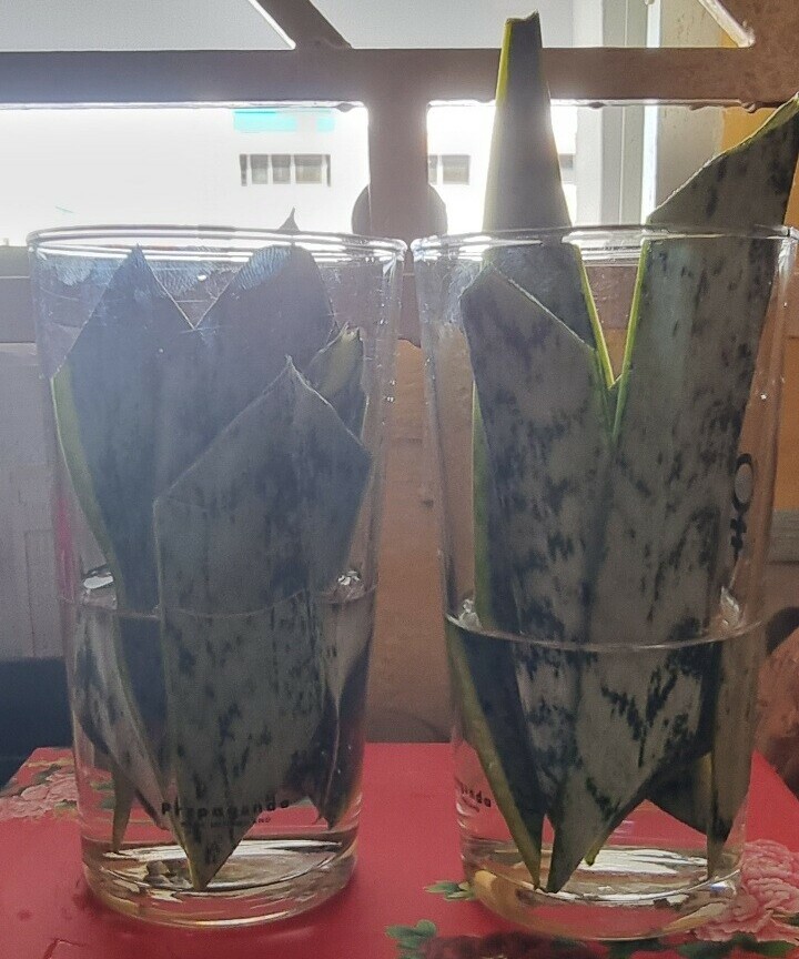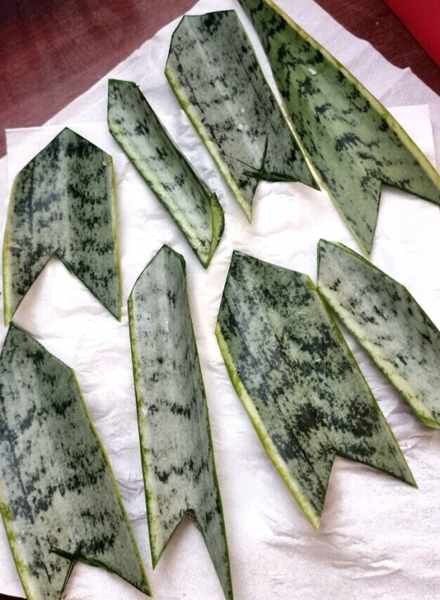 Was given a long leaf of a neighbor's snake plant. I cut it into smaller pieces.