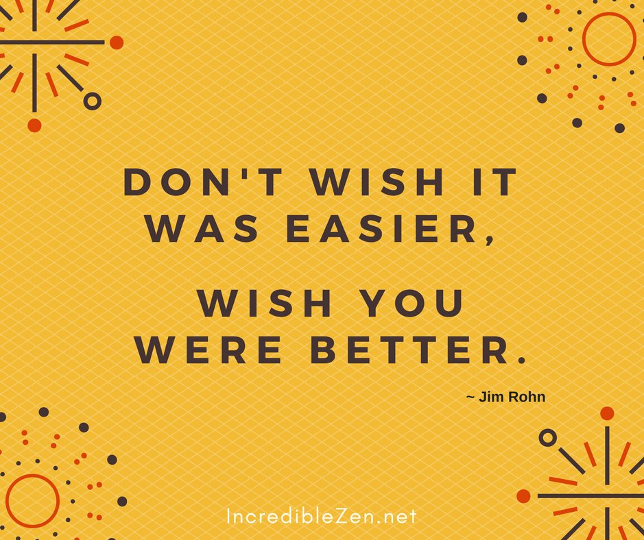 “Don't wish it was easier, wish you were better. Don't wish for less problems, wish for more skills. Don't wish for less challenge, wish for more wisdom”.