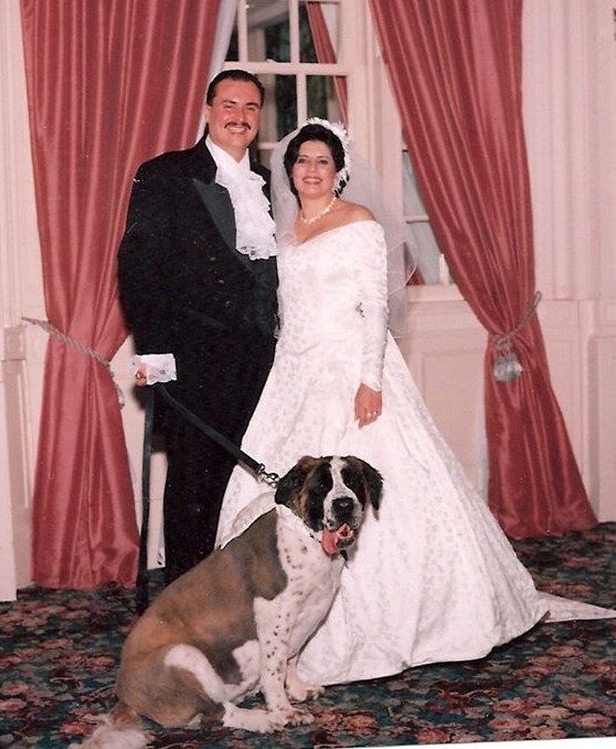 And, when we got married we had another St. Bernard, Bumper, who was a bridesmaid