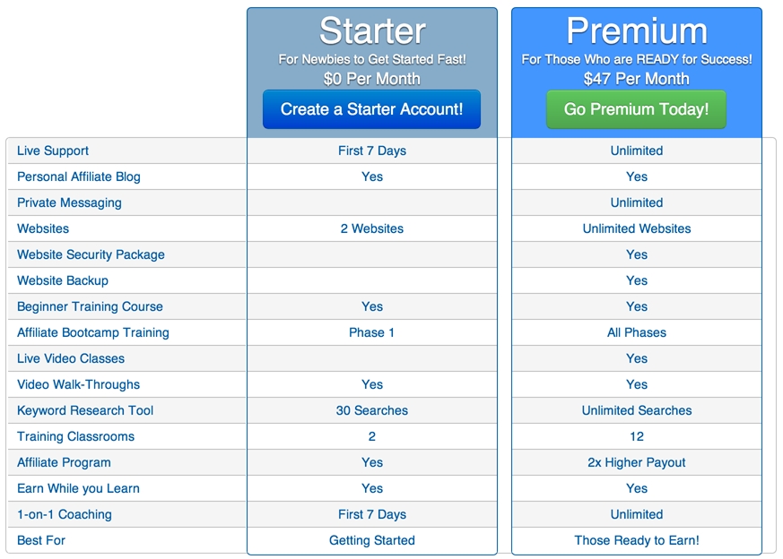 No endless lessons suggesting one costly product after another. I was so tired of that with my previous online program. Once you are premium you have an all inclusive program to make your website a business success.