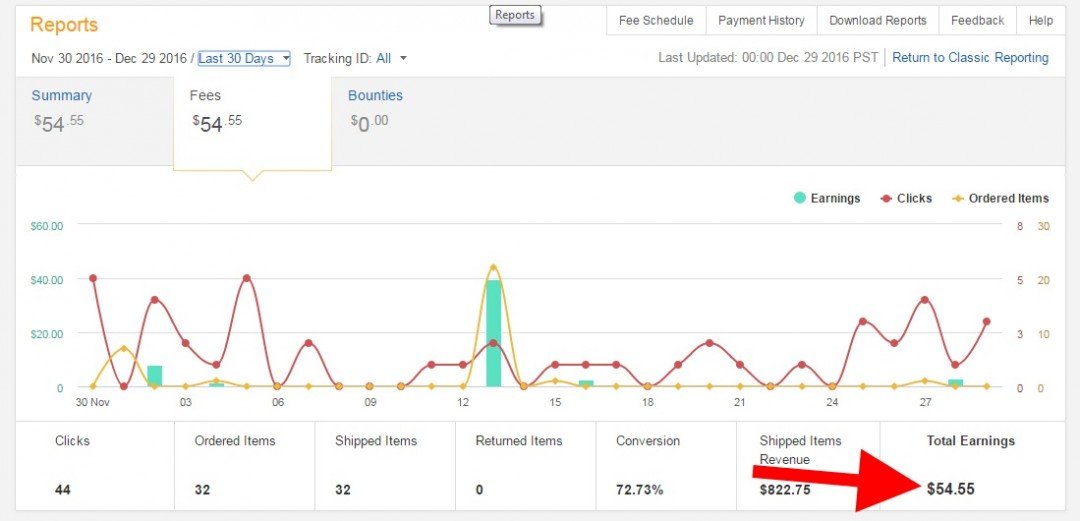 The real funny thing is the 32 Items that were shipped were not even from the main clicks people did through my site. It was other products after shopping around Amazon! That is the beauty of Amazon. As long as the original link was yours it doesn't matter what they buy after that!