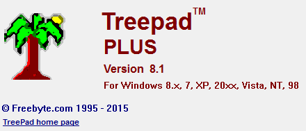 TreePad PLUS is Personal Information Manager, database, word processor, e-publishing program and more.TreePad PLUS stores your notes, letters, images, emails, texts, hyperlinks, etc. It keeps them accessible, organized, searchable and always just a few mouse clicks away.