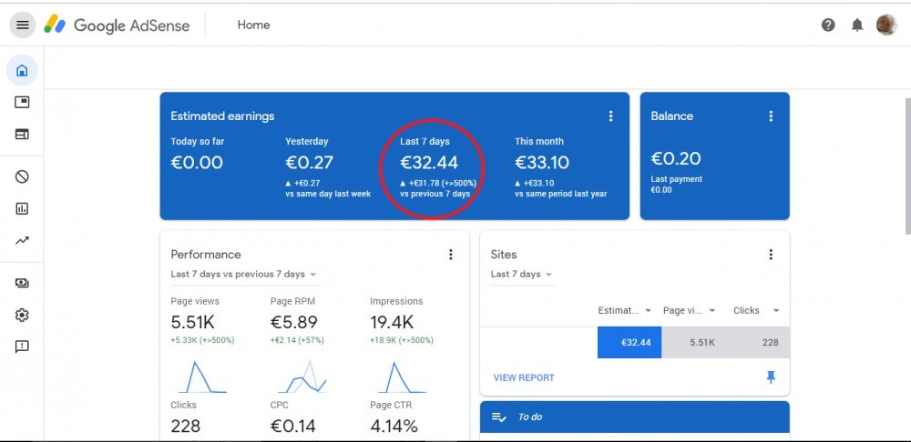 As you know, traffic eventually leads to income. So all that traffic wasn't without a reward. Google Adsence finally rewarded me. My estimated income rose from 0.2 euros after two and half months, to more than 32 euros (i.e. more than 36 US dollars) during last week alone.