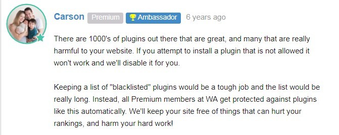 - As a premium member of Wealthy Affiliate, any harmful plugins are automatically 'blacklisted', to protect your site.