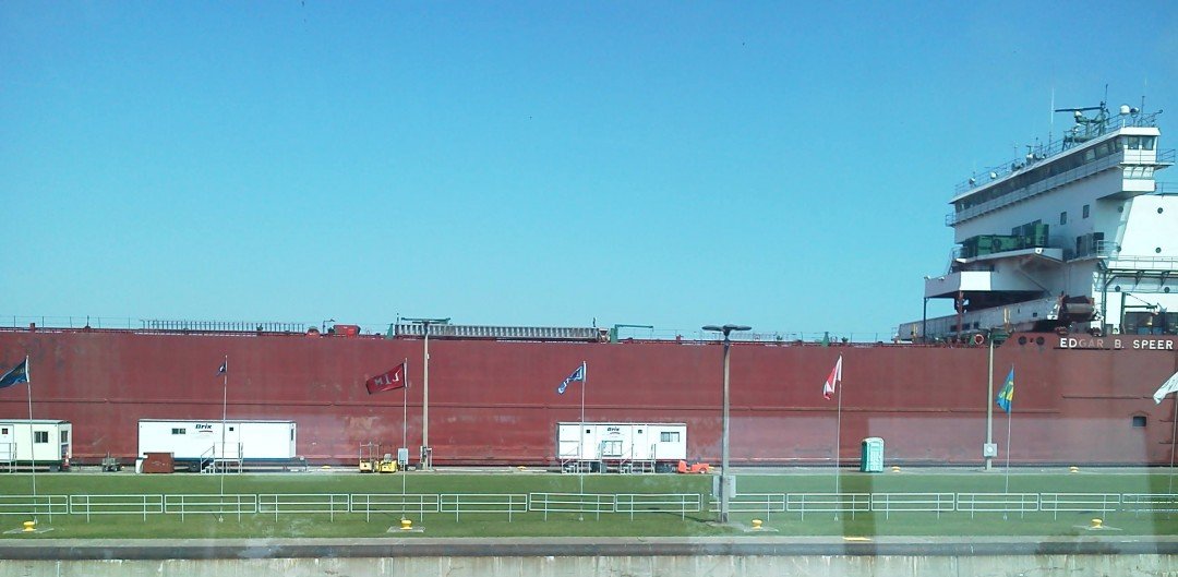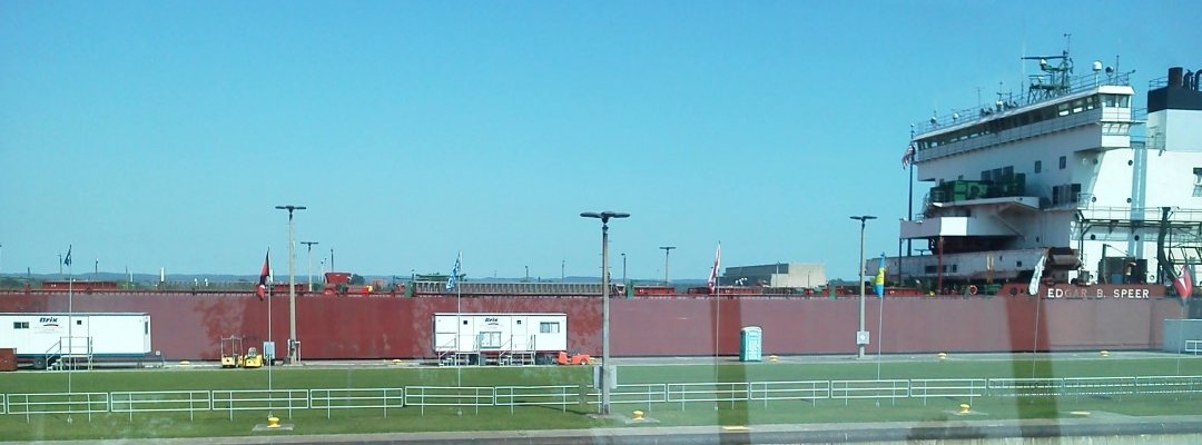 We found the observation platform located within Soo Locks park. We saw the vessels haul vital cargo and we all waved.