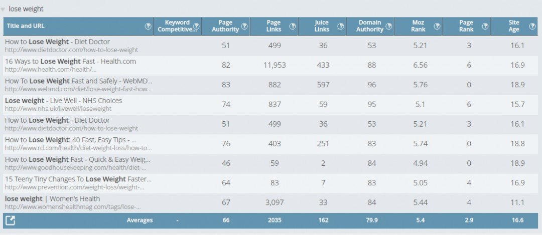 I also see that if you enter a keyword such as "lose weight" into Long Tail Pro, you will see that the keyword is very competitive according to the amount of high link juice and page authority.