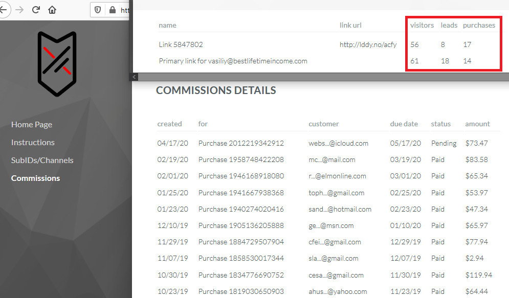 (Commission Details are starting from end of October. Purchases column shows total # of units from 2 affiliate links)