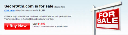 The other day while clearing my computer of the unused bookmarks, I was surprised to see my "secretatm.com" was up for sale for $1,695 having only invested $10 previously. See image below