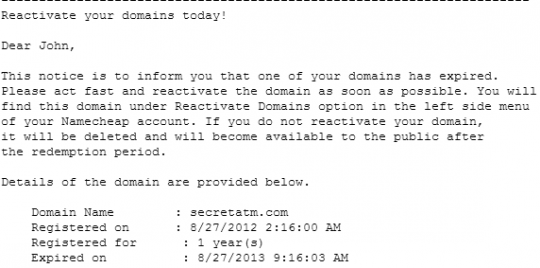 I bought a dot com domain from Namecheap with the intention to build an affiliate website. I posted content only twice and forgot about it. Namecheap reminded me about the renewal several times but ignored them. See image below: