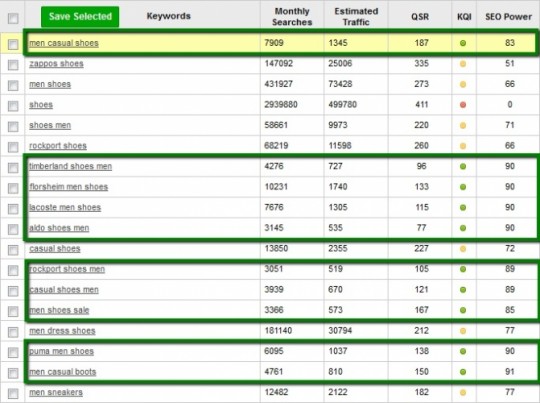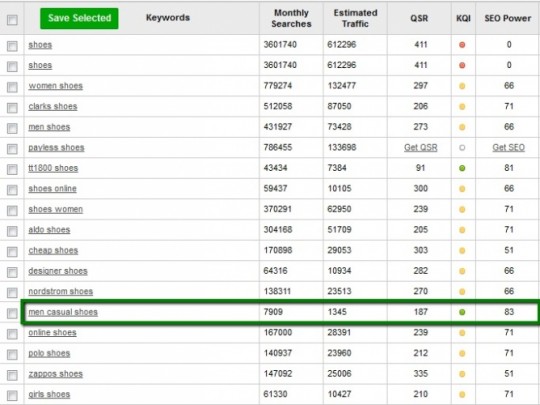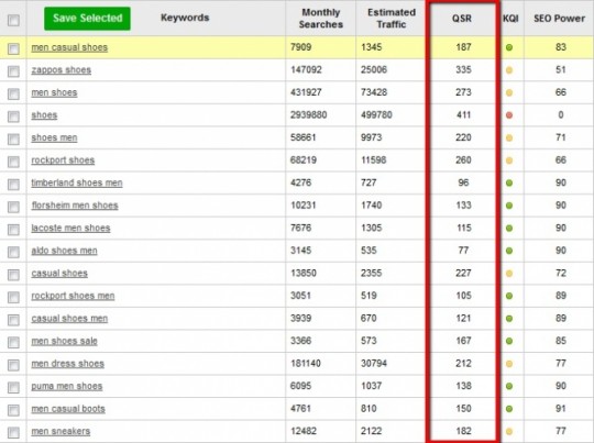 These colored buttons mentioned above give you a quick visual as to whether or not a keyword is quality one.. These indexes are based on several important metrics, but primarily traffic and competition (QSR: Quoted Search Results)