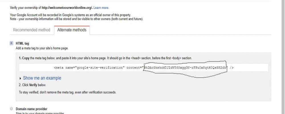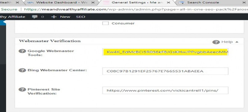 scroll down till you see the Webmaster Tool, Right click and paste the code in the box,