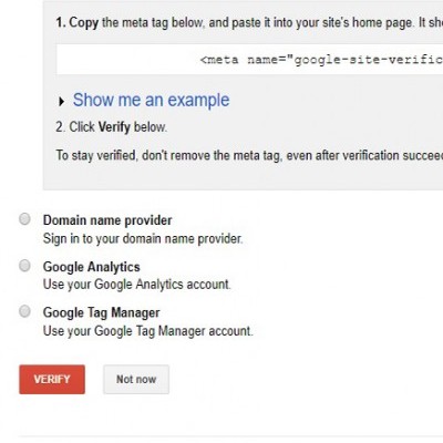 Return to your Webmaster Console and Click on the Red Verify Button.