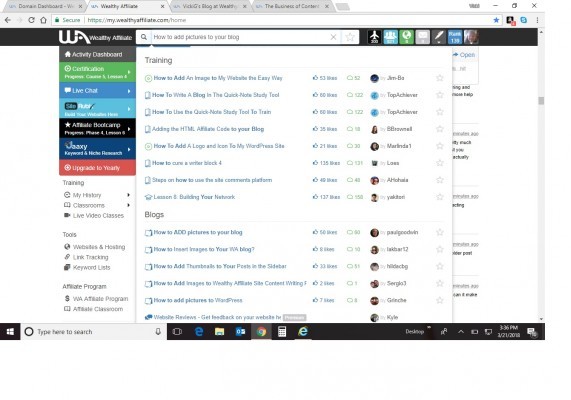 I know this may sound redundant, but all that do not know, if you can't find the answer you are looking for you can type the info into the search bar at the top of the page, and you will get severl different answers to what you need, As you can see I typed in How To add pictures to your blog, and it has a lot of different topics you can choose from. Including Training's and tutorials . Thank's VickiG