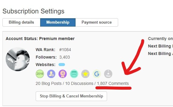 While looking through my account settings, I discovered a section that shows you how many comments you've made in Wealthy Affiliate!
