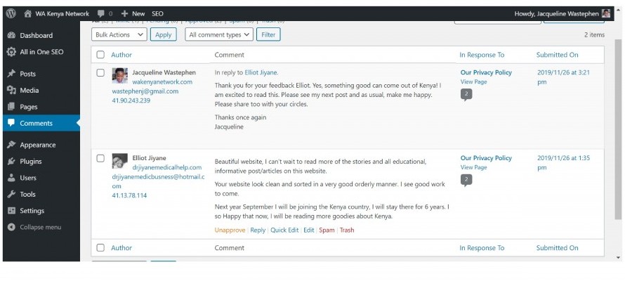 I don't know your struggles but mine are real and guess what? It's the first niche website that I found a comment and was excited! But why did the comment appear on our privacy policy?