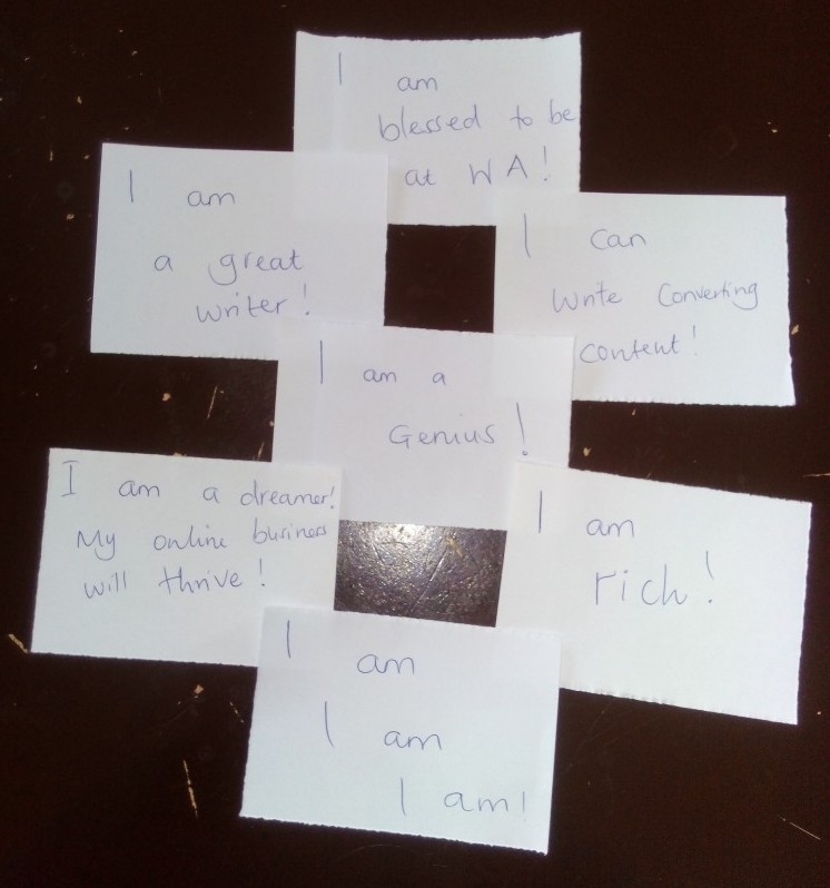 As you have written on those scraps of paper, the affirmations we make are what will help propel us forward towards our goals.