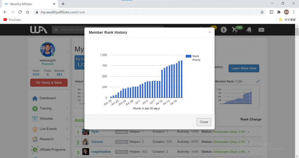 Down below is the screenshot that shows how my ranking has progressed within this month.