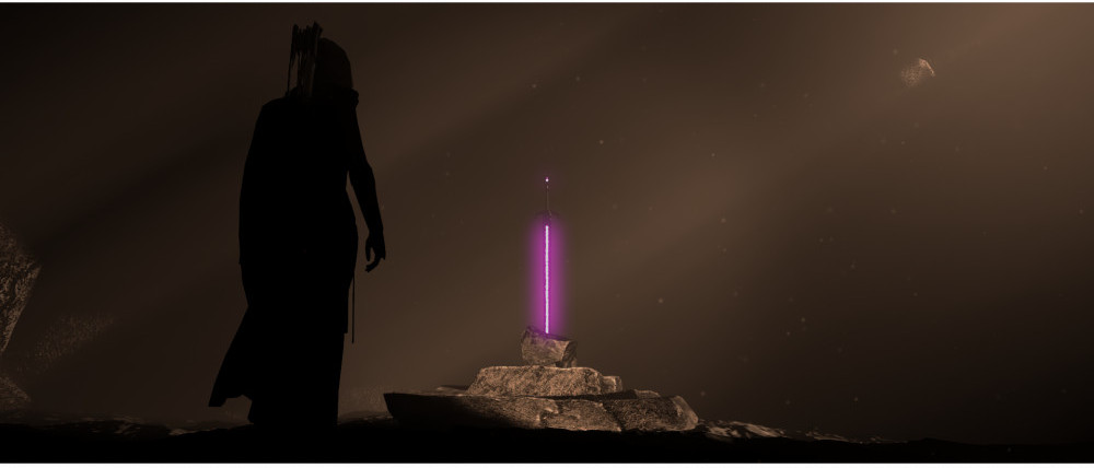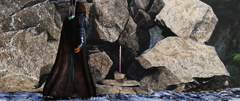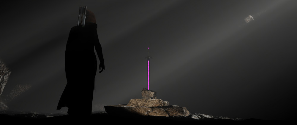 Following the instructions, I imported some rock models, nature background texture, the sword I made previously and a walking character (which you can download them all for free; check out the tutorials if you want to know more about that).
