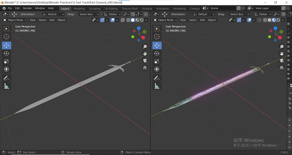 In the second part, he taught how to make a sword. He explained every detail, from modeling, shading, texture painting, UV mapping to compositing. However, This part is more advanced than the Minecraft part, for it contains so many functions being used altogether.