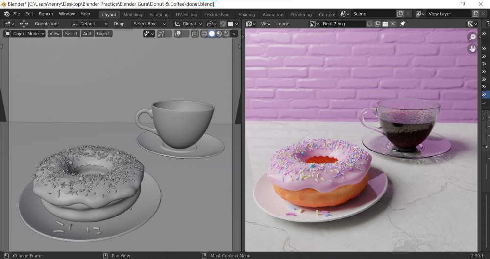 In my last post, I shared the story about how I learned and used Blender (a free 3D animation software; click the link if you want to download it as well) to make the photo on the left. I did so by watching Blender Guru's tutorial. You can click the link if you want to check it out; it's targeting total beginners and very easy to follow.