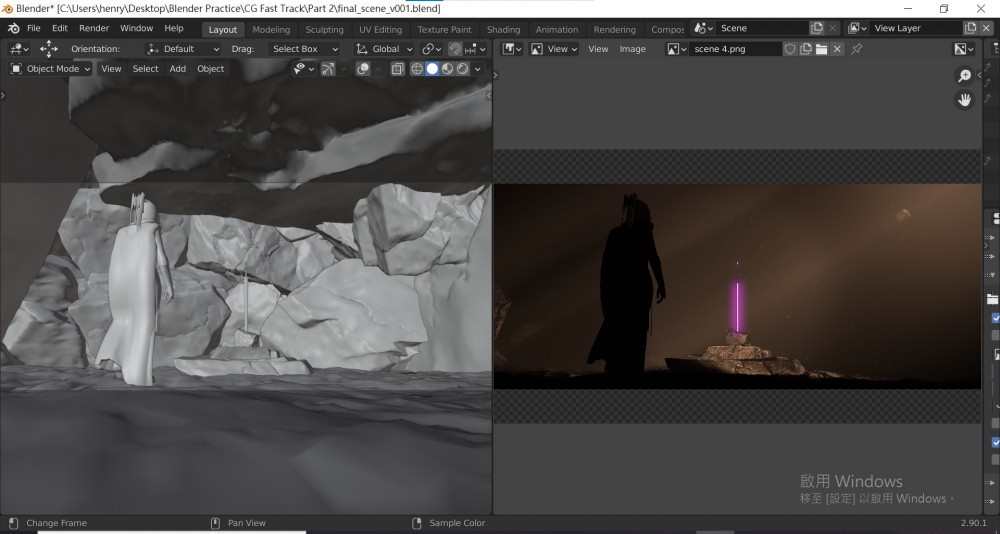 In the final part, he taught how to build an entire environment to make a cinematic scene.